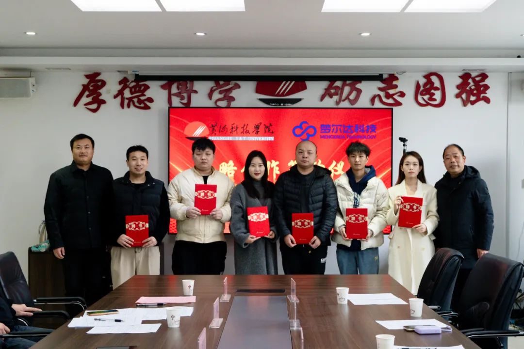 1月12日上午, 黄河科技学院与河南梦尔达科技有限公司签约授牌仪式在艺体学部二楼会议室成功举行。
