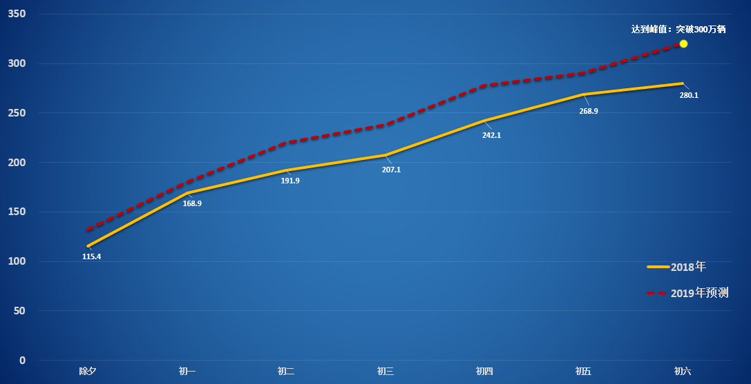 预计春节期间,我省高速公路交通总流量将达到1800万辆左右,日均约250万辆,为日常流量的1.8倍,较去年同期增长约25%。其中,正月初六总流量将突破300万辆,达到年内新高峰。