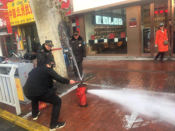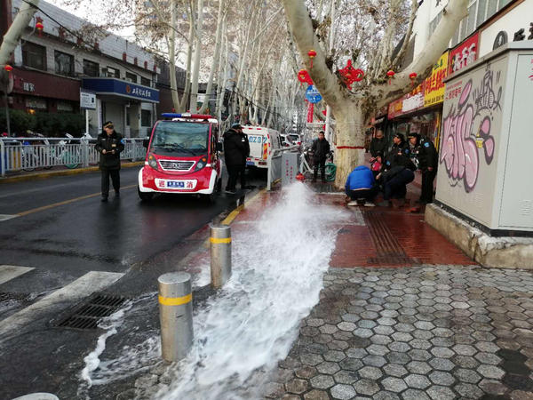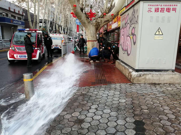 2月2日下午4时30分,郑州金水区花园路办事处巡防队员王志强、任新军等人,巡逻到政二街金水路口时,发现路口东北角的一个消防栓正向外猛烈喷水。白花花的水流向马路后,使马路变成了小河,积水最深处达到了15厘米。