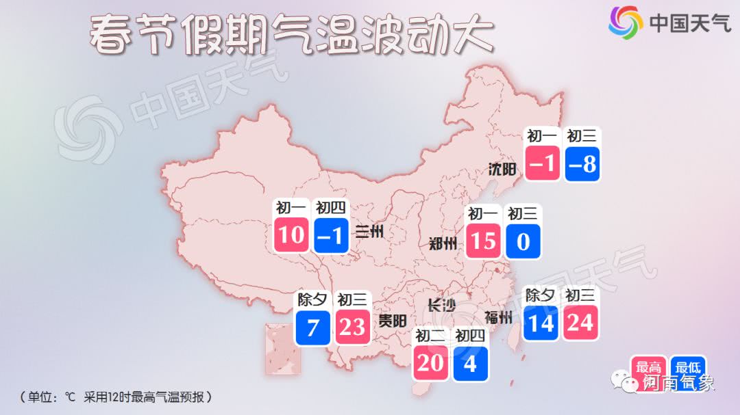 初三到初五(7-9日),受降雪和冷空气共同影响,全省气温低迷,需注意防寒保暖。