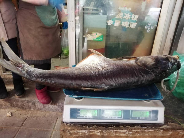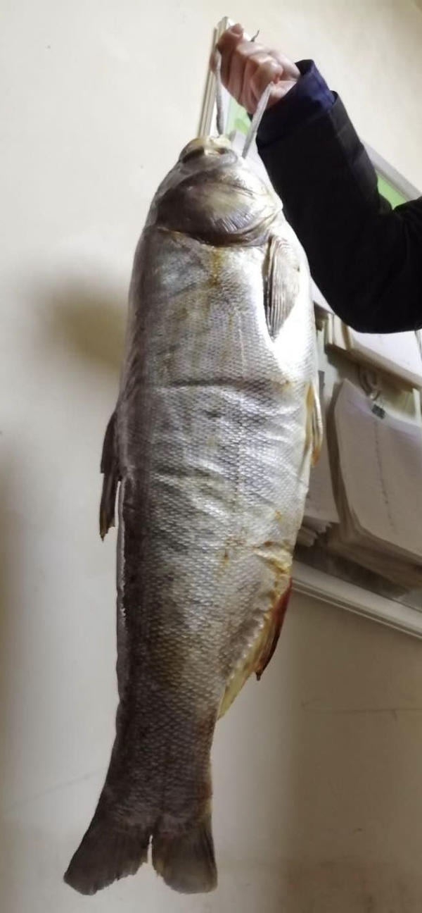 "为了寻找失主,我们提着鱼到小区里询问,问了十几个人,都说不知道是谁丢的鱼。因为我们还要到其它小区里去巡逻,不可能一直等在这里,便找了个纸牌,写了一个联系方式放在健身器旁边,然后把鱼放到小区的巡防室里,希望失主返回寻找时能看到这个牌子联系我们。"队员郑新蔚告诉记者,经过称重,这条鱼重11.6斤,在没有风干前,重量可能在15斤左右,丢了实在可惜。