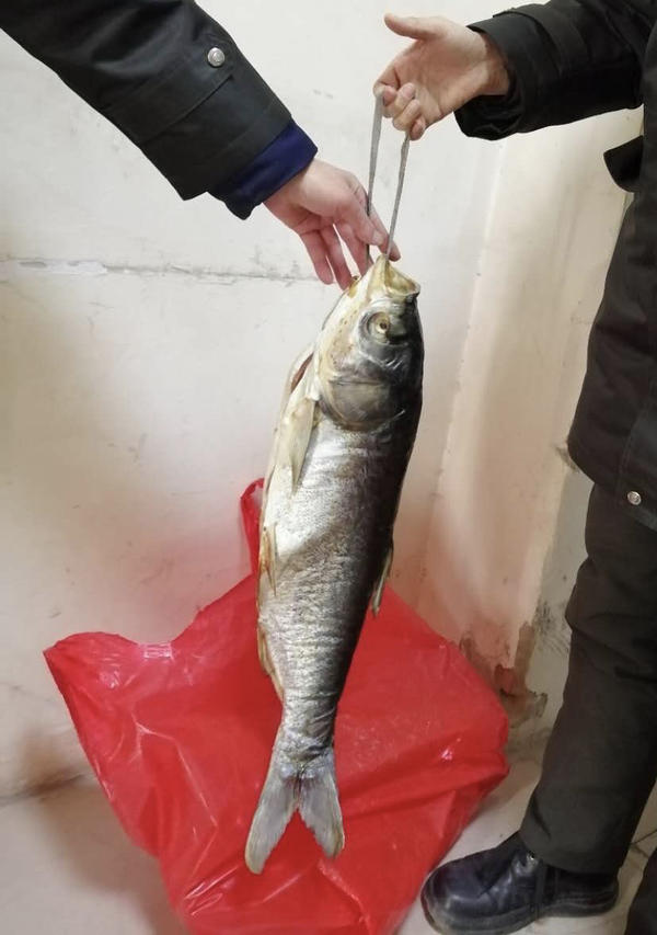 2月11日下午2时许,巡防队员胡新蔚、李力、刘开锋巡逻到纬二路27号院时,发现健身广场的一台健身器旁,放了一个红色的塑料袋,用手一掂,还挺沉。见旁边没人,队员打开了袋子,发现里面竟然装了一条长约70厘米的大鱼。