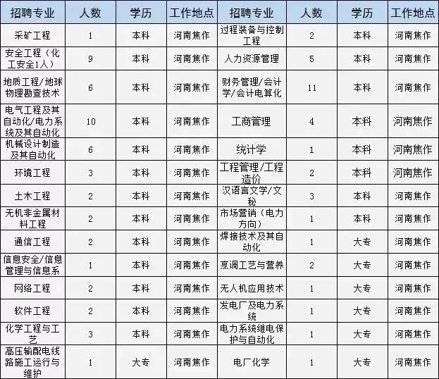 2.通过全国普通高招取得全日制统招学历或取得国家教育部留学服务中心认可的国(境)外学历学位证书的全日制高校毕业生的2016届、2017届、2018届、2019届本科及以上学历毕业生和2016-2019届大专毕业生及2020届顶岗实习生,专业和学历符合河南能源招聘计划规定的专业和学历条件。其中境内外高校2019年全日制本科及以上学历应届毕业生:国内高校毕业生需在2019年7月31日前取得毕业证、学位证、报到证(报到证上报到单位必须是签约单位全称);海外留学生需取得国家教育部国外学历学位认证书。