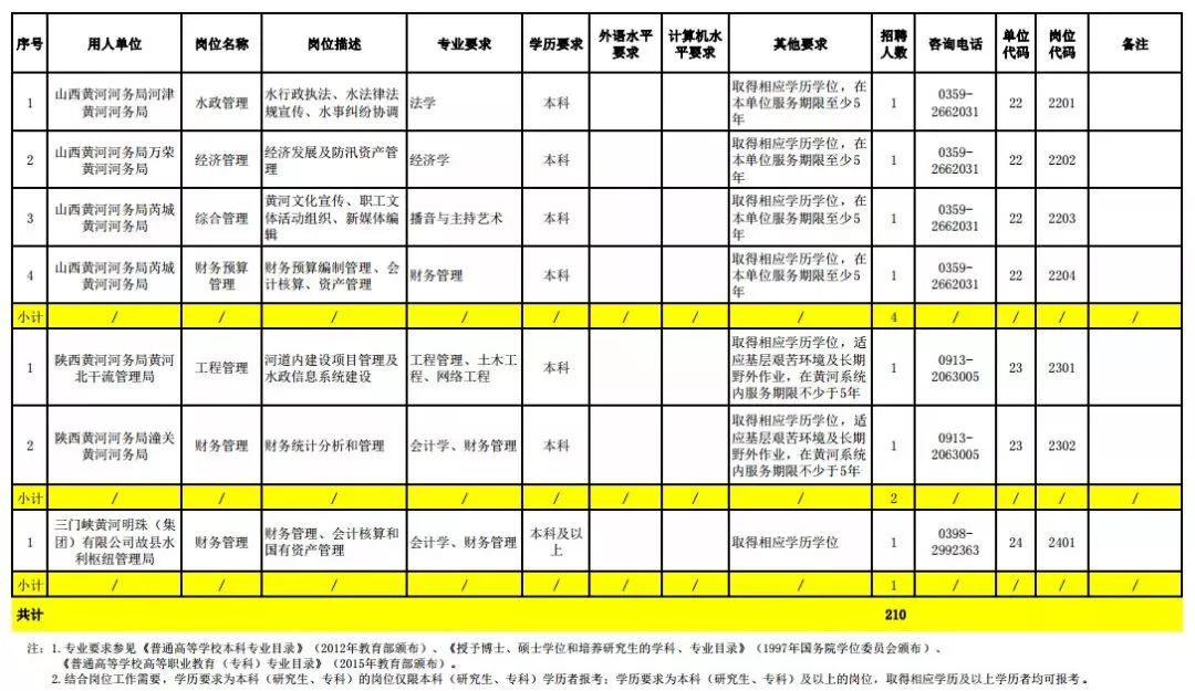 招考岗位及岗位要求详见最后《2019年黄委事业单位公开招考高校毕业生计划表》