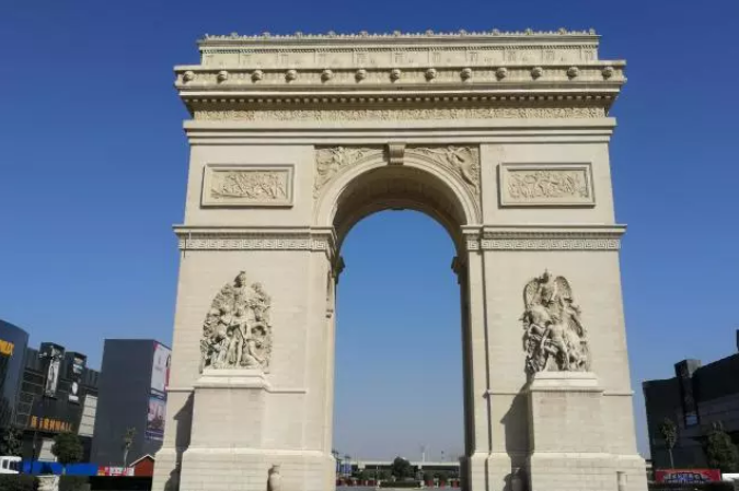 3月12日,记者在郑州金马凯旋家居CBD广场上看到了此建筑群,一座仿巴黎凯旋门的建筑和四组雕塑矗立在广场中央,在蓝天背景的映衬下,还颇具美感。但是,当河南商报记者拿出手机拍照时,却遭到了保安人员的阻止,被保安人员告知,最近网上流传了此建筑群不好的东西,希望不要把拍的图片传到网上。