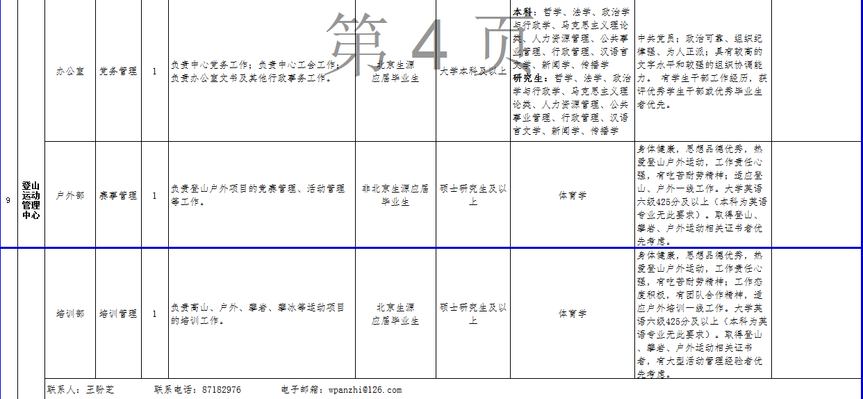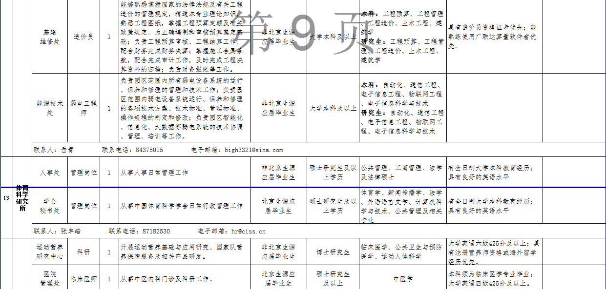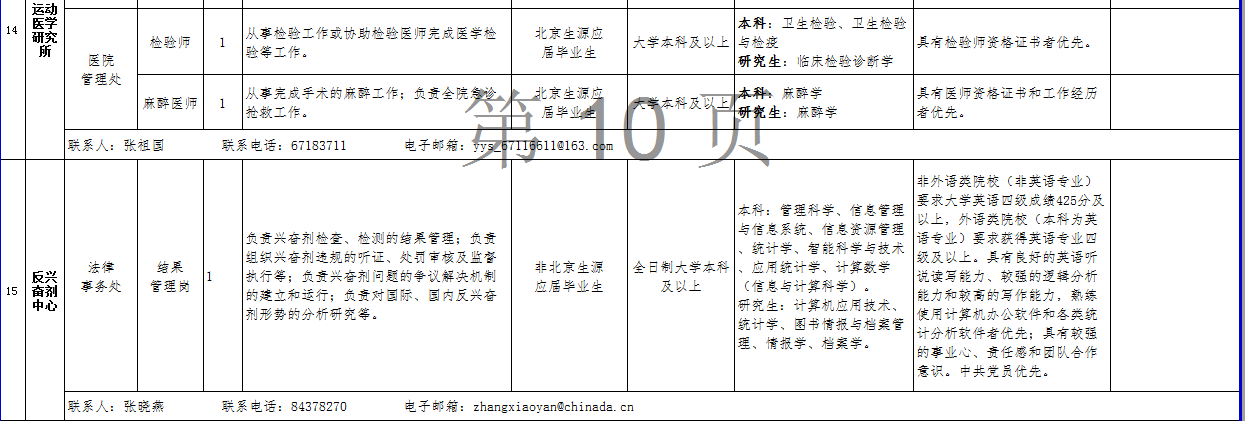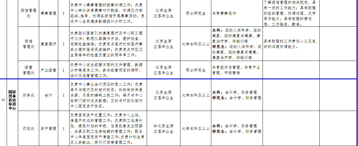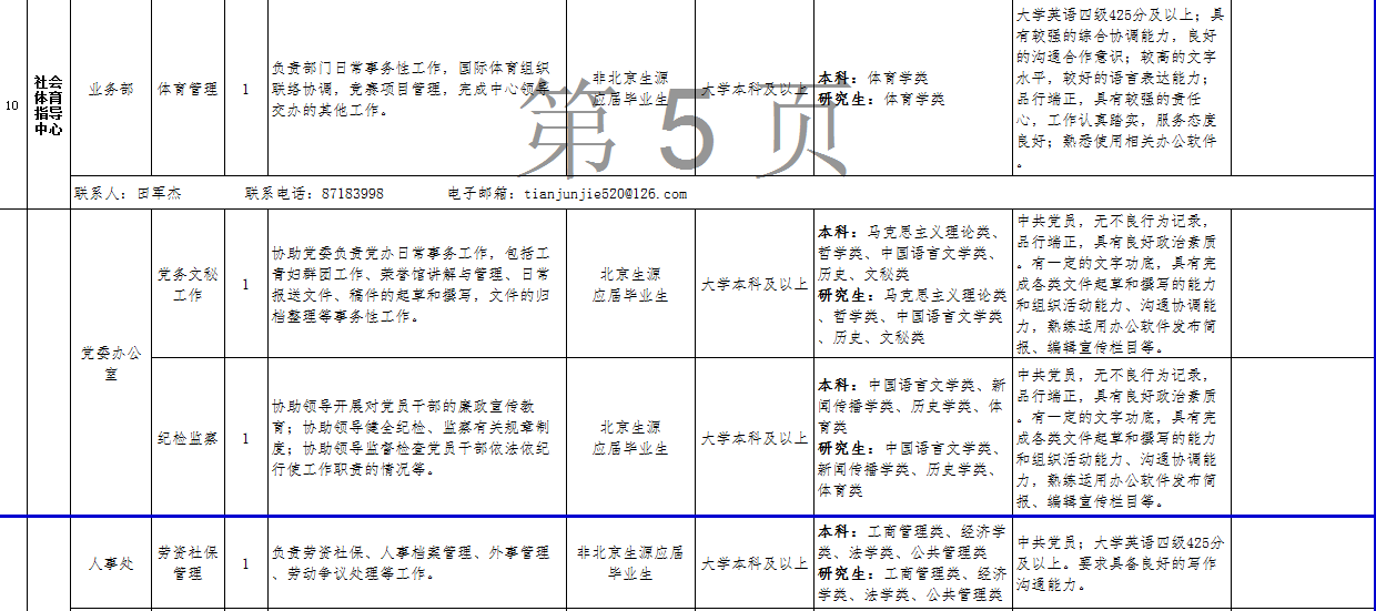 (三)关于考务、政策等方面的信息可在公开招聘专栏中查询,也可咨询体育总局人力中心(咨询电话:67159766、87182654、87182180)。关于招聘单位、招聘岗位、岗位条件及报名等方面的信息可直接咨询各招聘单位(联系人及电话详见岗位情况一览表);笔试结束后的面试、考核、体检等方面工作请直接与各招聘单位联系。