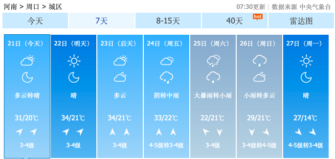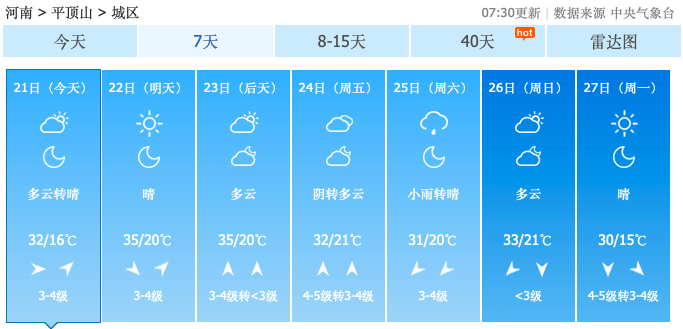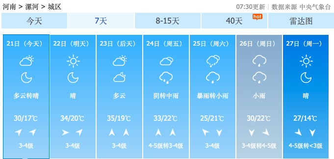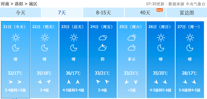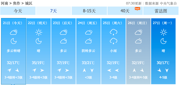 附河南省各地市近期气温图↓
