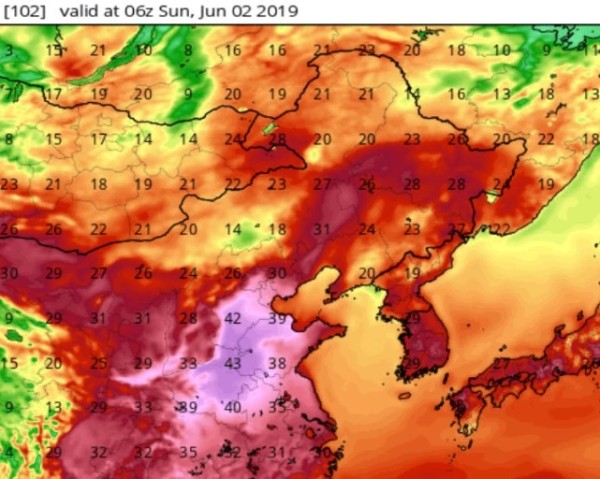 然而超级计算机预计,接下来华北平原的高温热浪似有再度加强之势,目前的炎热才只是开始,按照超级计算机最新预测,在6月1日华北平原的高温将明显发展增强,并且在6月2日前后发展到鼎盛,按照2米高度气温预测,我国河北南部-山东中西部-河南中北部一线将出现大范围的38度以上的炎热天气,河北中南部、河南中北部局地气温更可达43-43度!这将是一波极为火热的热浪天气。