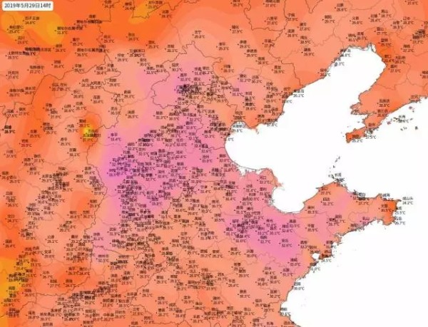 对于华北多地来说,5月下旬的太阳热力已不同1月2月,而且随着太阳直射点已经位于北半球且还在向北移动,北方很多地区白天的日照时间已经迅速延长,近地面在长时间日照的影响下升温显著,529日下午14时,华北平原的河北中南部、山东中东部的不少地方气温已经达到了30度以上,局地达到33度左右,白天又有些夏日的炎热味道了。