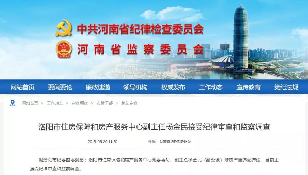 洛阳市住房保障和房产服务中心副主任杨金民接受纪律审查和监察调查