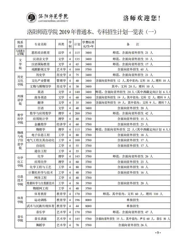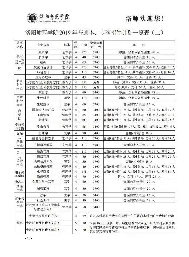 1.2019年学校面向全国招生的本科专业有44个,计划招生3180人。专科招生专业13个,计划1600人;专升本招生计划800人;少数民族本科预科生40人。