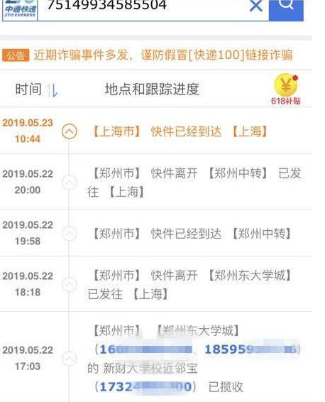 根据曹先生提供的订单号,河南商报记者进行了查询,系统显示2019年5月22日下午五点多,郑州东大学城某快递点进行揽收快件,5月23日上午10点40左右,快件已到达上海,此后信息一直未有更新。