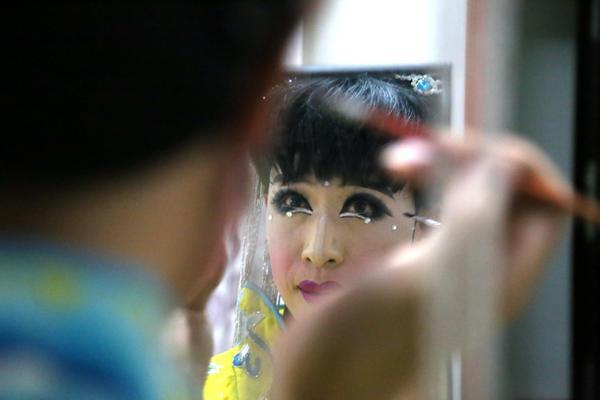因为条件所限,给自己化妆成了“玉蜻蜓”的必修课。上妆之后,你根本发现不了他是男儿身。