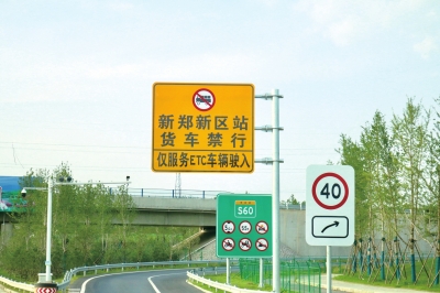 7月23日下午,河南商报记者驱车从京港澳高速转入商登高速,离新郑新区站出口3公里左右的位置,一些提示牌上面显示“仅服务ETC车辆驶入”,还有提示牌显示“新郑新区站全部车道ETC收费”。