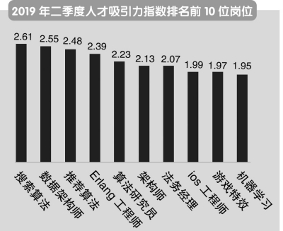 2019年二季度人才吸引力指数最高的岗位是搜索算法