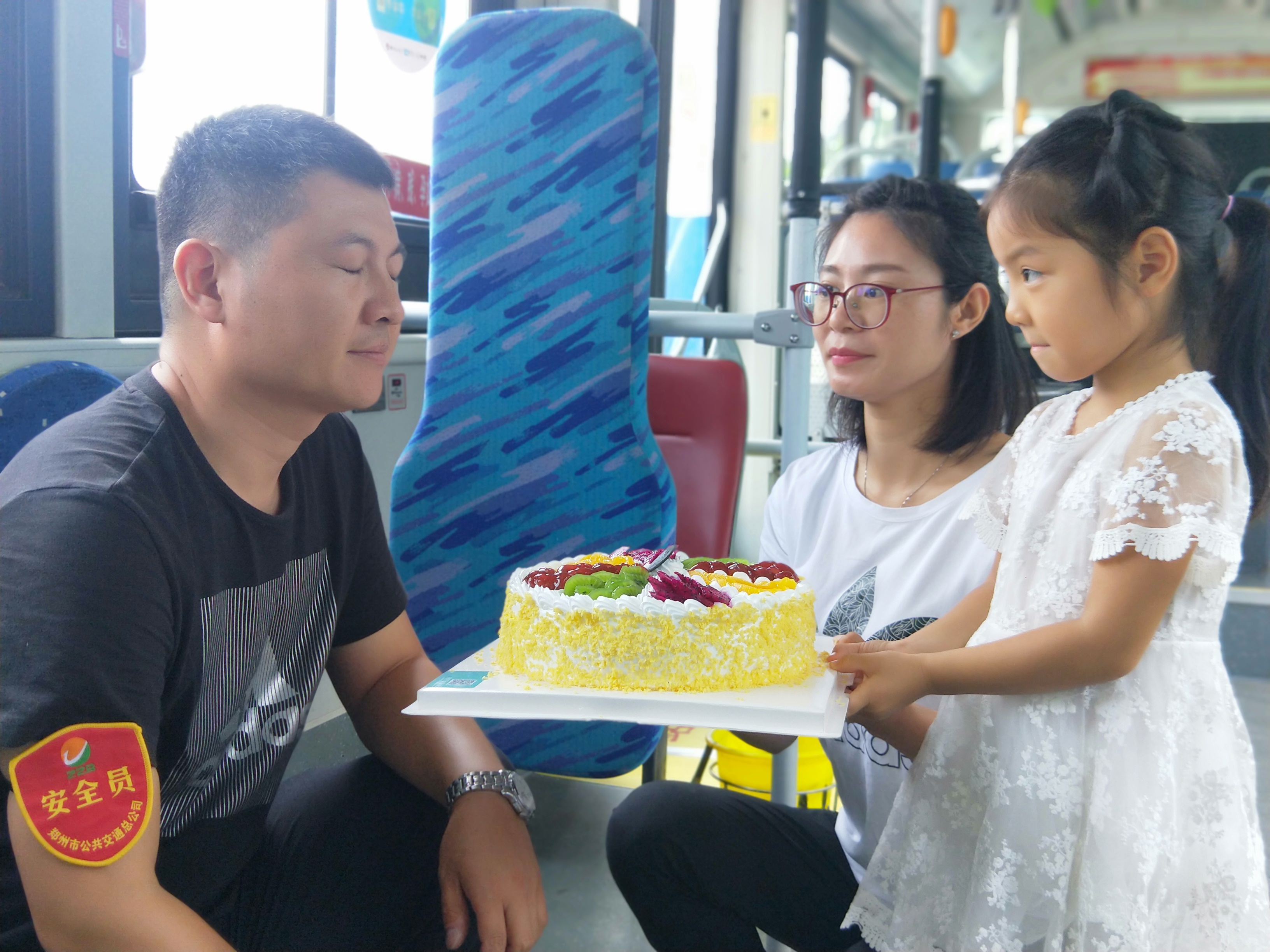吃蛋糕、吹蜡烛、许个小心愿,这是过生日时饭店里经常出现的熟悉场景。但7月30日,这样的场景,却在公交车厢内上演。这天,是郑州公交车长刘建军女儿甜甜的生日,但因为工作原因,他却不能陪女儿度过。这不,妻子带着女儿来到刘建军的单位,趁丈夫跑完一趟车回来休息的间隙,一家三口一起过生日。看到女儿端出的蛋糕,身为爸爸的他掉下了眼泪……