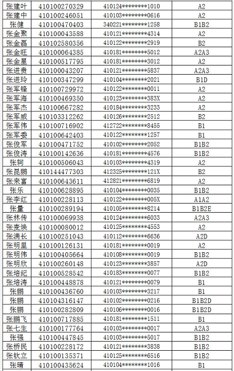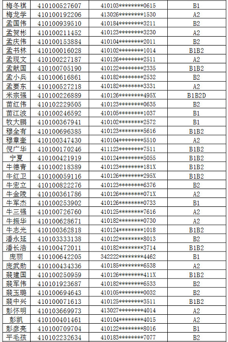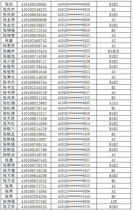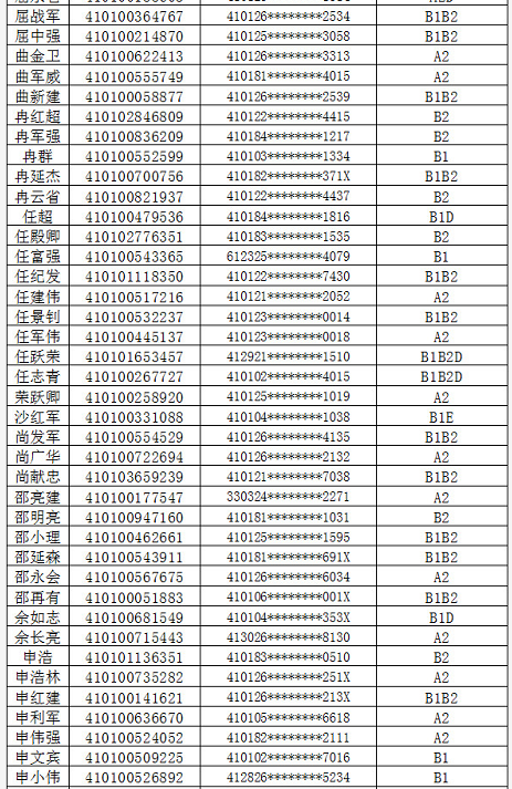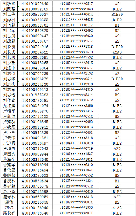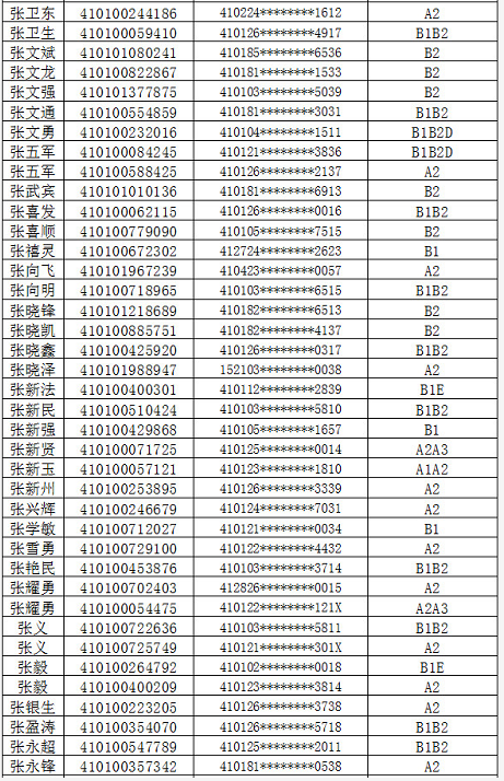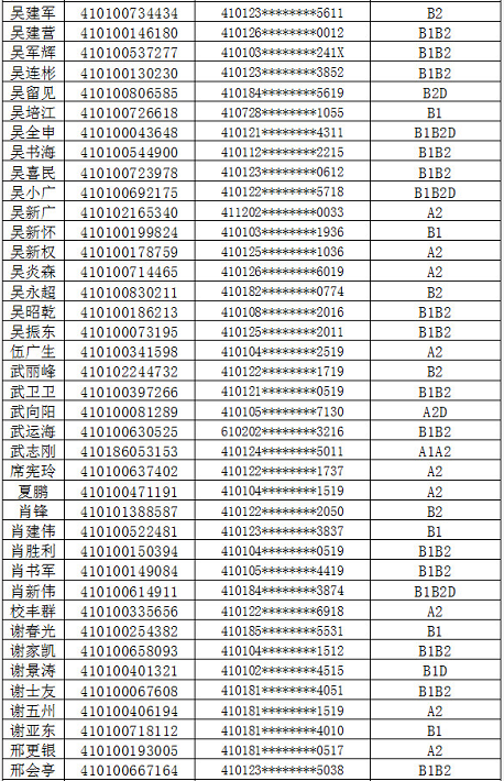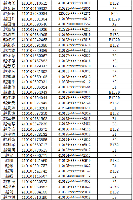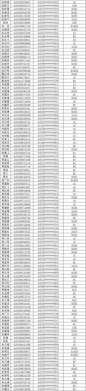 现将名单公布如下,如有异议,请持有效身份证明前往郑州车管所查询具体情况。
