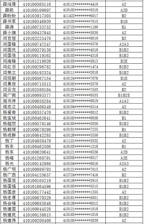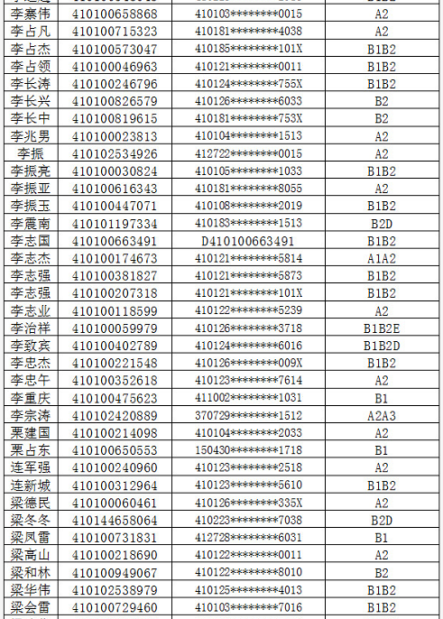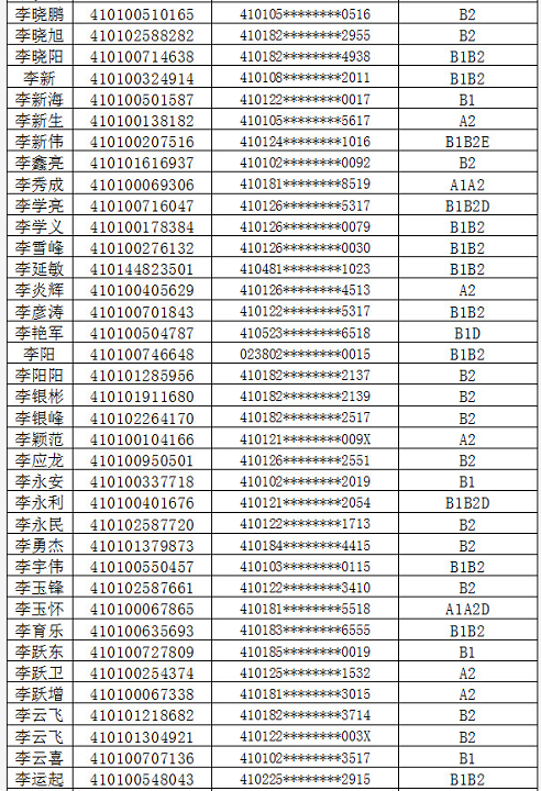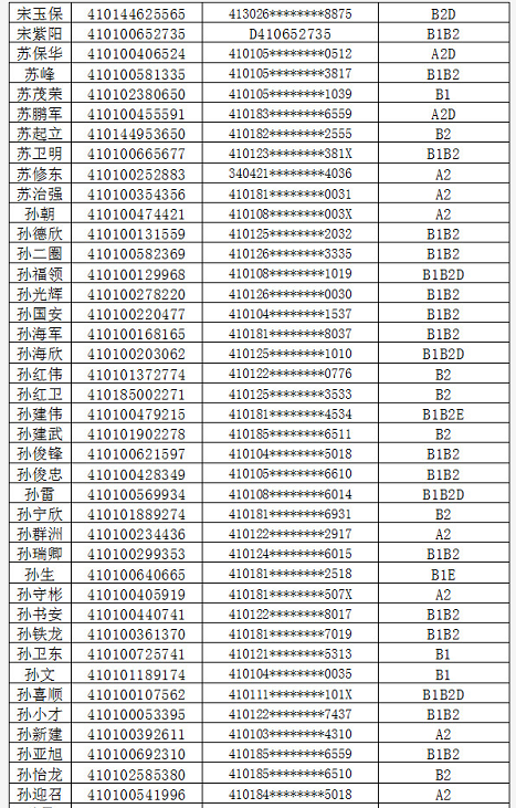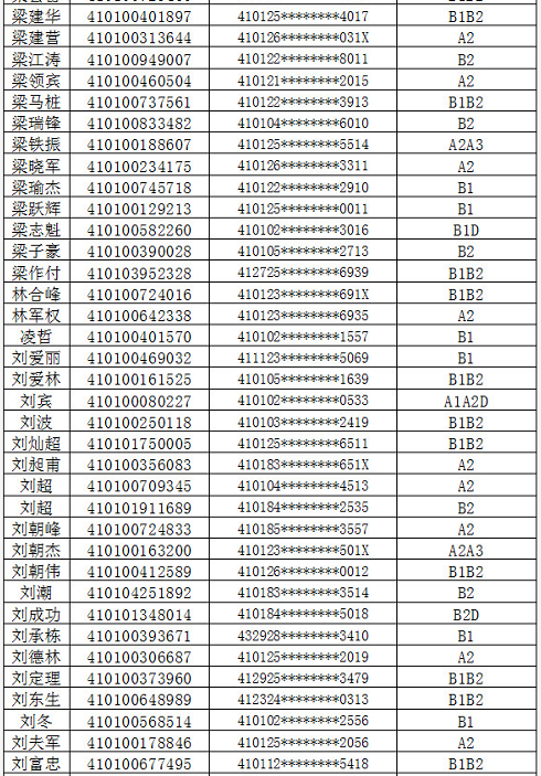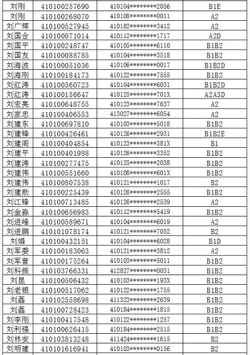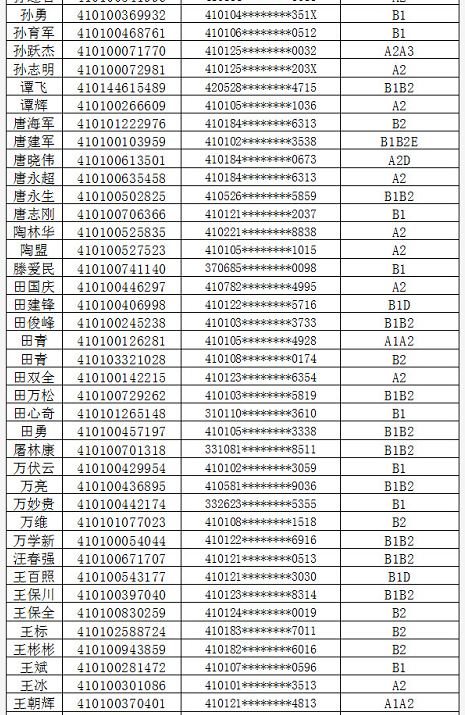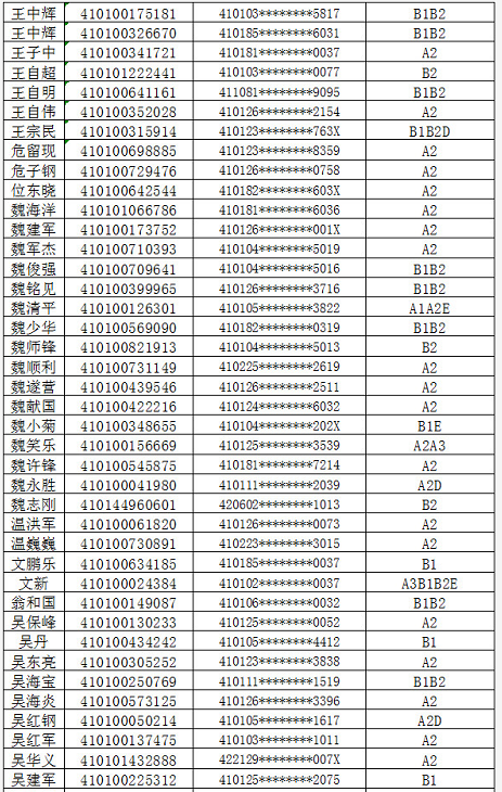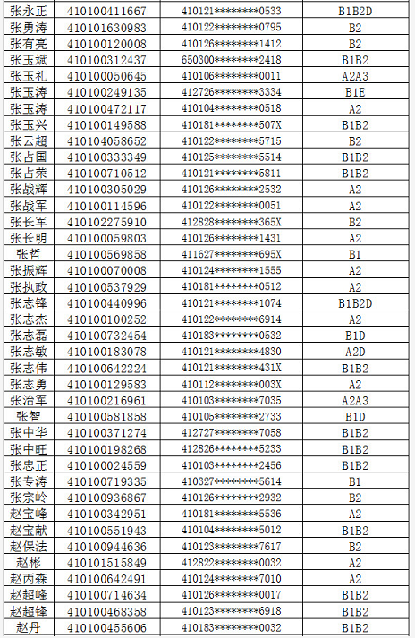 现将名单公布如下,如有异议,请持有效身份证明前往郑州车管所查询具体情况。