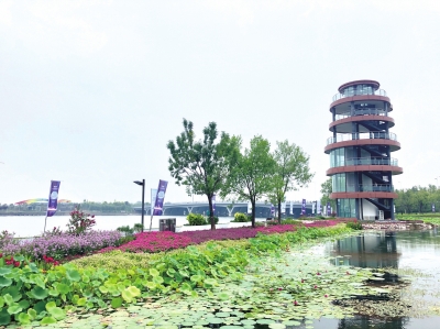 在郑东新区龙湖水上基地,龙湖水上基地的船库、裁判塔、主席台、绿化提升工程已经完工,美丽“芳容”尽显。作为继主场馆郑州奥体中心之后最为重要的赛事场地,龙湖水上基地承担着本届全国民族运动会龙舟、独竹漂两个水上项目的训练和比赛任务。