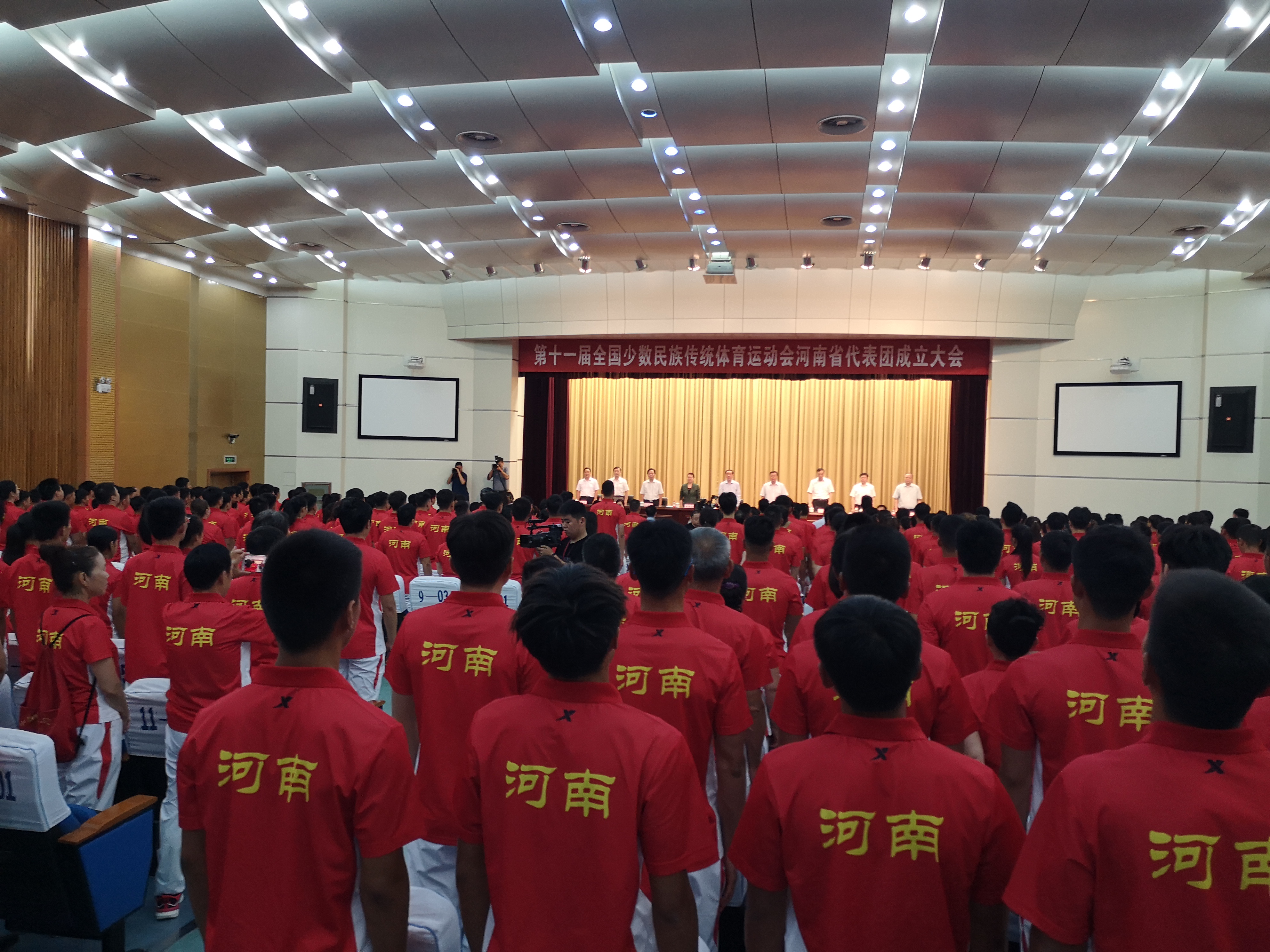 9月3日上午,第十一届全国少数民族传统体育运动会河南省代表团成立大会在郑州大学体育学院举行。河南省副省长戴柏华出席成立大会。