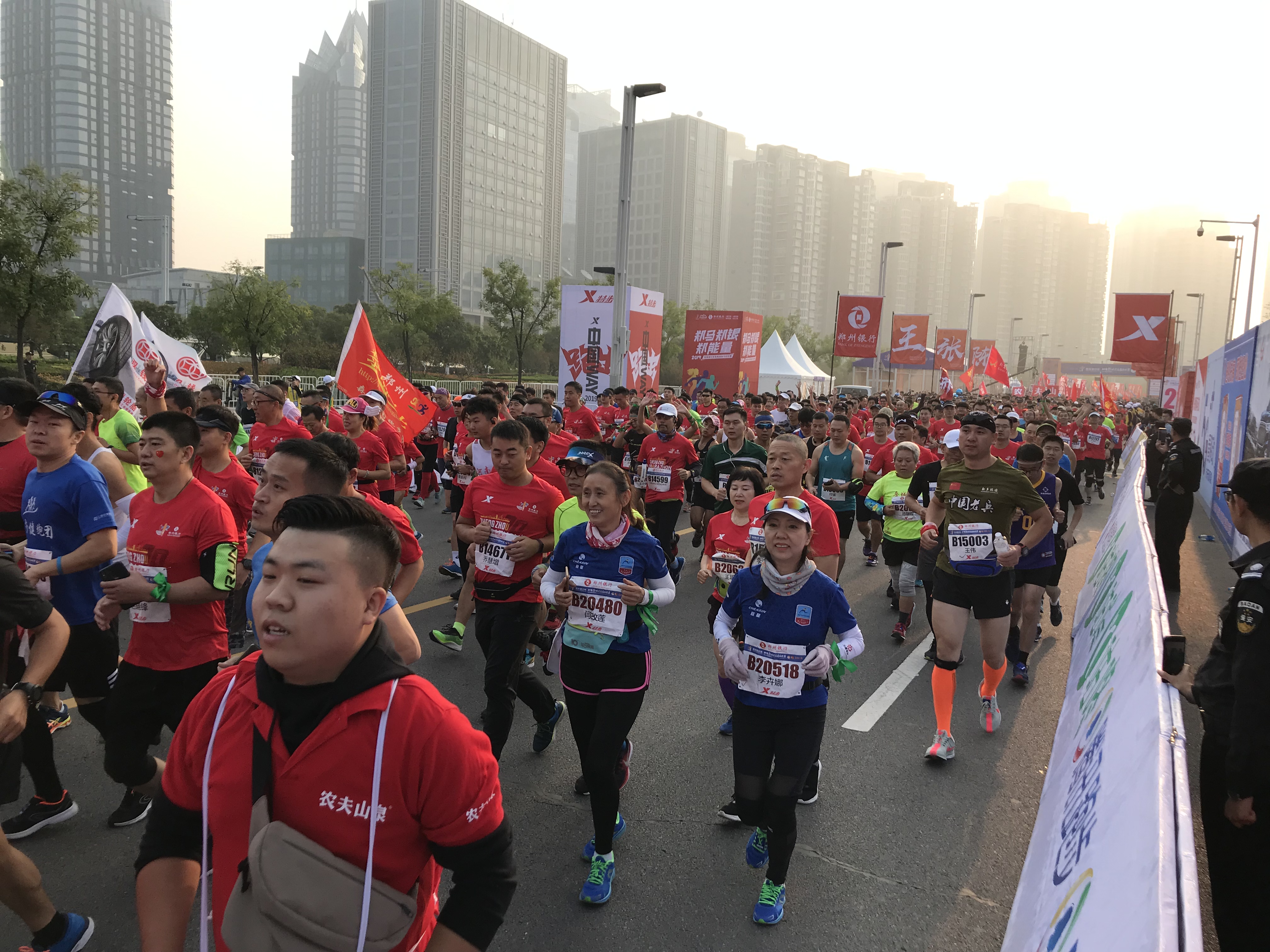 从起跑线出发的,有久经战阵风国际专业马拉松选手,有向自己发起挑战的业余选手,有体验健康跑和家庭跑的市民,有不同的方阵。其中,也不乏在国内各种马拉松赛事中打卡的跑友,也有不少参加过第一届郑州国际马拉松的群众。