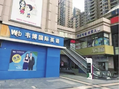 10月11日下午3点,大河报·大河财立方记者探访了韦博英语位于郑州金水区的升龙广场店。该培训点位于广场的二楼,广场上韦博国际英语的广告墙格外醒目。