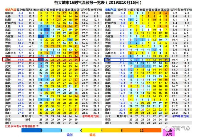 虽然冷空气退场,但是受辐射降温和降雨的共同影响,明天气温继续低迷,大部地区明天白天最高气温以及17号早晨最低气温都会创近期新低。 比如郑州明天最高仅有14度!17号早晨最低气温7度!明天凌晨到17日凌晨,西部、西北部高海拔地区和东部、东北部局部有初霜冻。