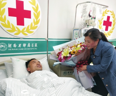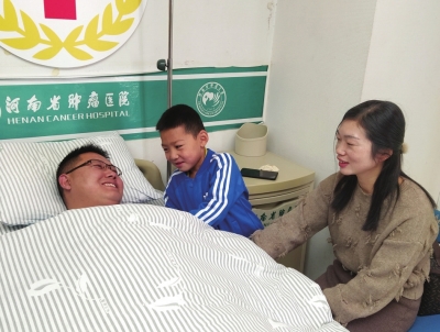 10月15日一大早,在河南省肿瘤医院造血干细胞采集中心,张显奎躺在病床上进行造血干细胞捐献。身边的儿子似懂非懂地问:“爸爸没事吧?”“放心吧,爸爸没事,他这是在做好事,可以挽救湖南一个小朋友,跟你差不多大的小朋友。”张显奎的爱人宋静对儿子解释。