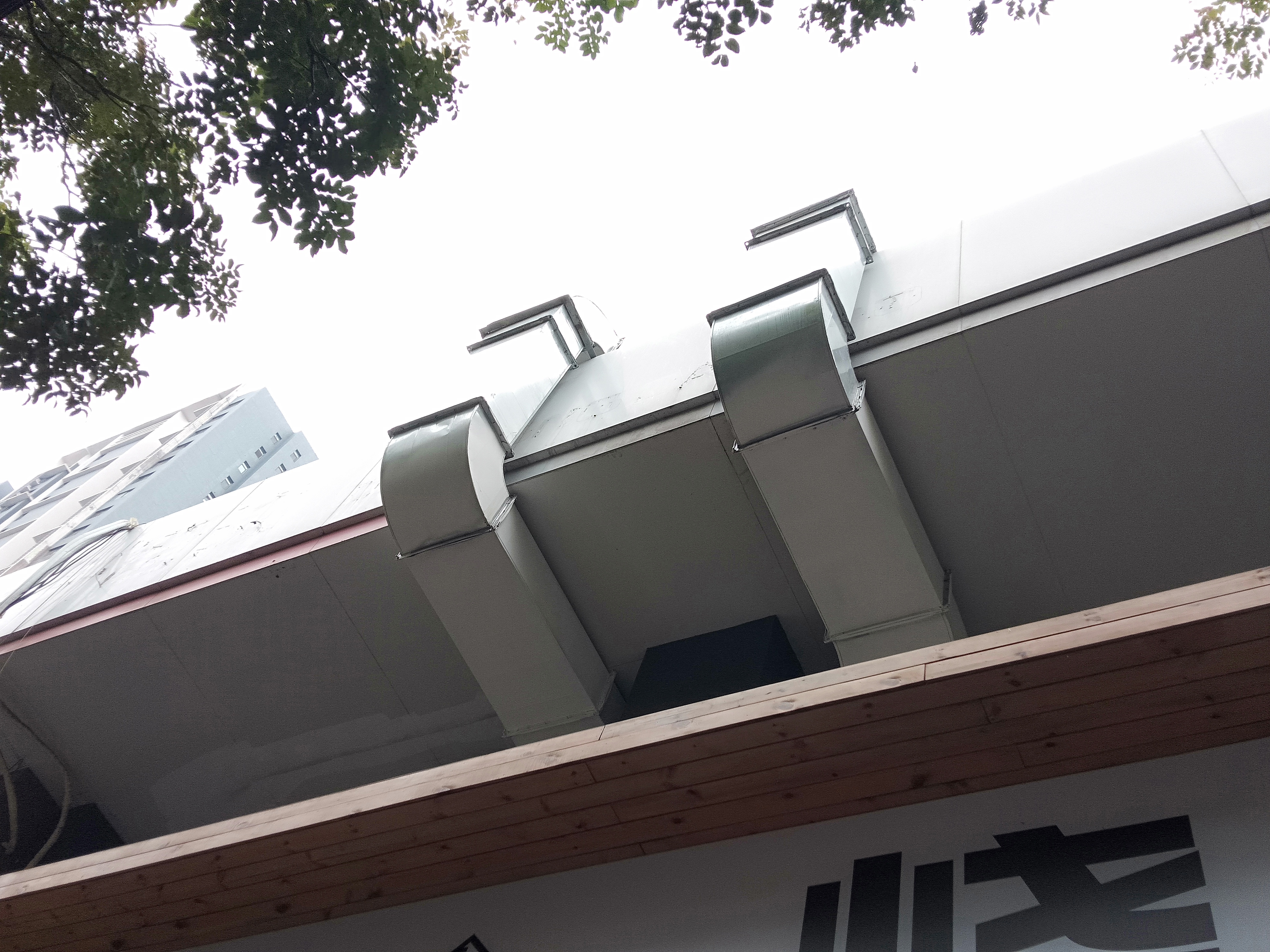记者注意到,在烧烤店门口顶部有一处排风扇,两根很粗的管道通向上方,发出“嗡嗡”的噪音,站在不远处就能清楚的听到。
