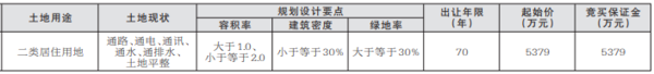 公告显示,该地块位于梨河镇中华南路西侧、规划颖河路北侧,土地面积36743.5平方米(折合约55.12亩),土地用途为二类居住用地,起拍价为5379万元,熔断价为8079万元,最高限价为10758万元。