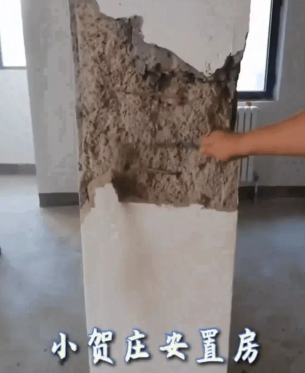 小贺庄安置房内,一敲就碎的柱子(视频截图)