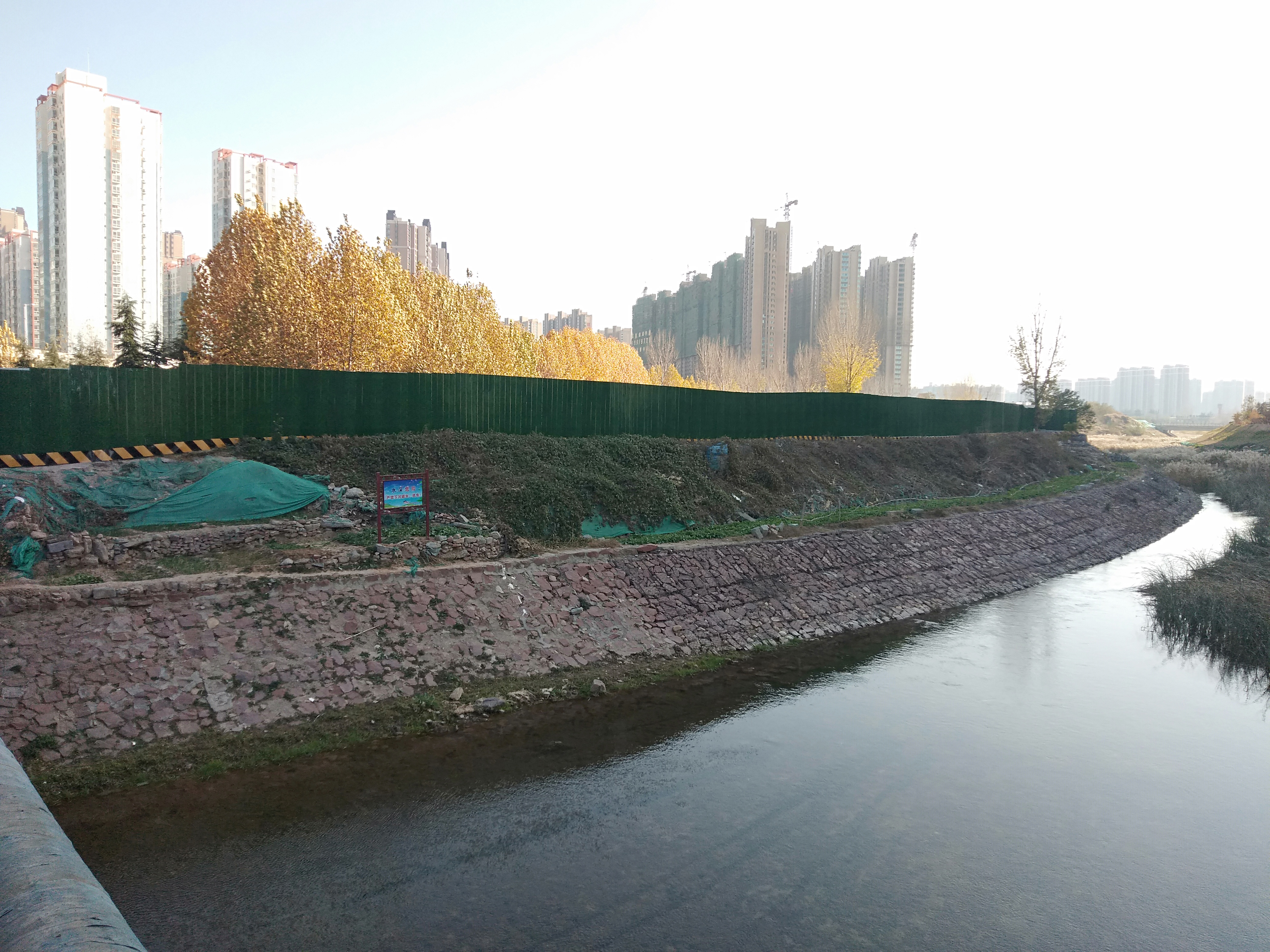 12月10日下午,大河报记者再次来到了位于西三环丹青路交叉口附近的金水河畔进行探访,此前挺立的简易房已经拆除完毕,四周绿色的铁皮围挡遮挡着。金水河畔边裸露的黄土,上面覆盖着防尘网。