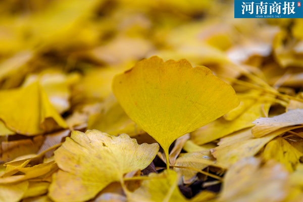 “满路遍地黄金甲”,郑州人民公园南门道路两边,生长着18棵银杏树,金黄的树叶在寒风中洋洋洒洒地向下飘落,经过一个月的堆积,一层层的金黄的银杏树叶十分耀眼。
