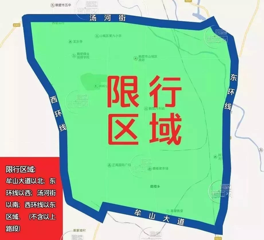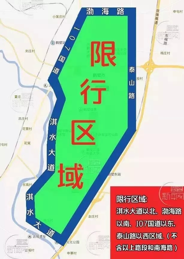 鹤壁新城区(淇滨区、开发区、城乡一体化示范区):淇水大道以北、渤海路以南、107国道以东、泰山路以西区域(不含以上路段和南海路);