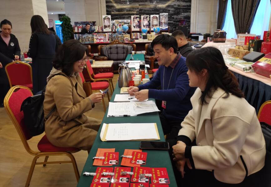山河宾馆是今年政协委员们的驻地之一,7日下午,记者在一楼大厅委员报到处看到,登记处的长桌上,一个个红色的委员证摆放整齐,静待主人,不时有委员拉着行李箱、拎着文件袋等赶来,分组登记,领材料、办入住。