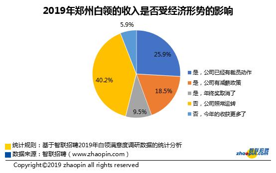 对于不断爆出的经济走低、裁员潮等信号,25.9%的郑州白领表示“公司已经有裁员动作”,18.5%的表示“公司有减薪政策”,还有9.5%的郑州白领表示“年终奖取消了”,选择“今年收获更多了”的郑州白领占比仅为5.9%。