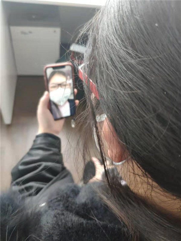 (不能回家过年,正在与家人连线视频,表达思念和牵挂的高妍)