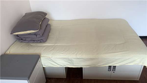 (休息室的临时床铺,疫情期间的非工作时间,小朱和同事们就在这里休息)