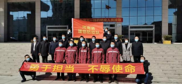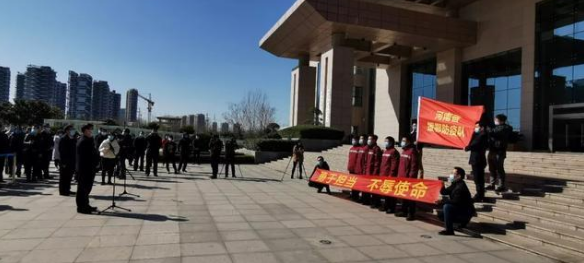 2月17日下午,河南省首批支援湖北省防疫队伍,在河南省卫生健康委员会楼前广场举行出征仪式后,出发前往武汉。河南省人民政府副秘书长黄东升主持出征仪式,省卫生健康委主任阚全程讲话,为队员们送行。