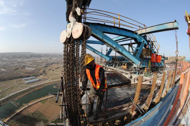 弘农涧河特大桥桥长3178米,最大跨径160米,桥高达到137米,是河南省第一高桥。特别是主桥采用160米跨径连续钢构,采用挂篮施工,平均每个节段需要14天左右,才能完成立磨、钢筋制作、混凝土浇筑等工序。