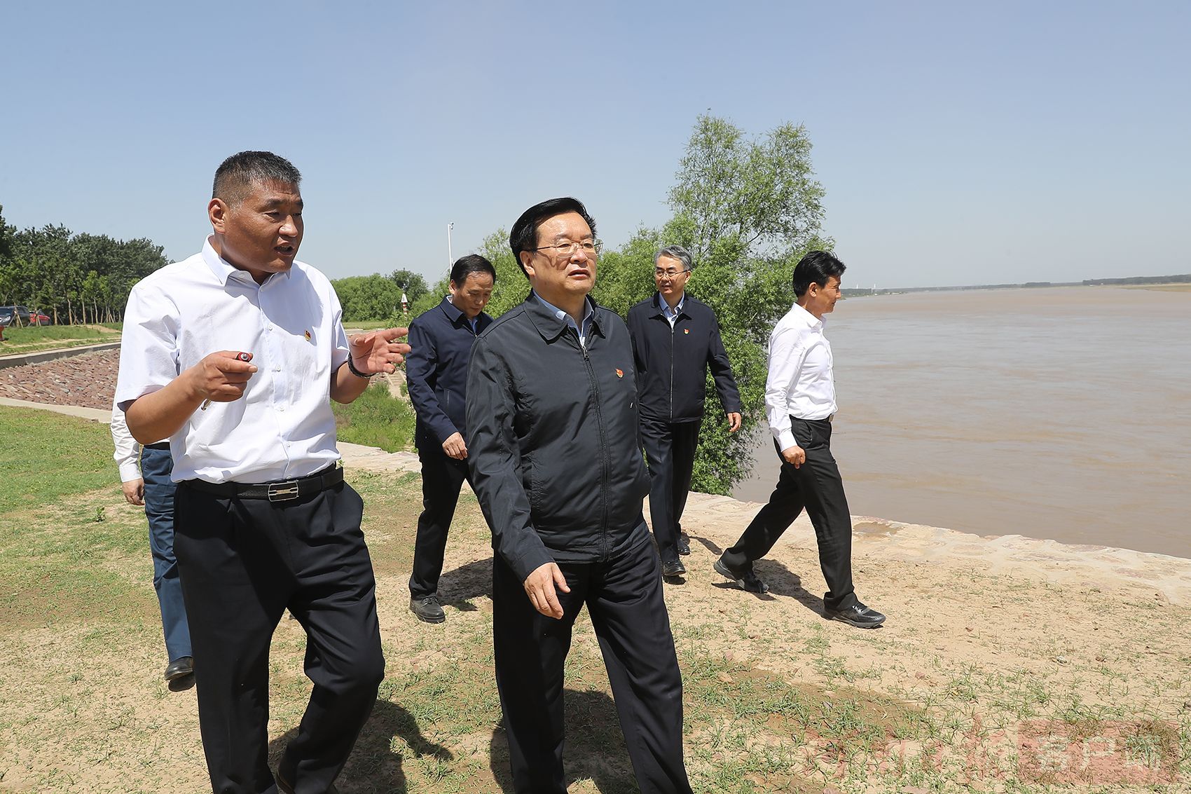 5月18日,省委书记王国生到黄河巡河巡堤,察水情水势、看险工险段,检查防汛备汛各项工作。