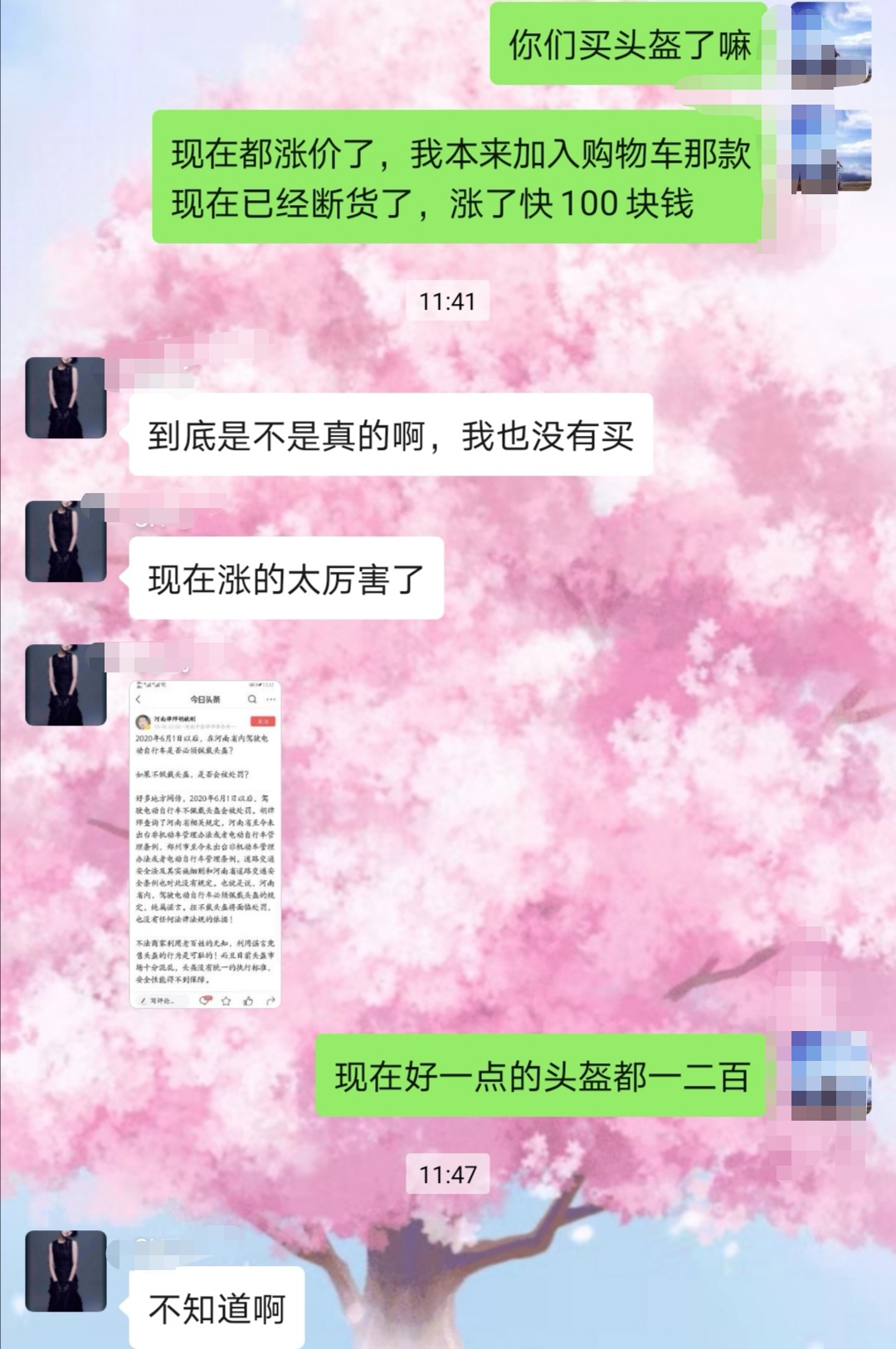 网友“艾莉儿”:头盔涨价两三倍,而且质量堪忧,希望相关部门能管管。戴头盔是为了自己的安全,但是如此价格与质量不符,口罩头盔,一波接一波被割韭菜。好的规定,要循序渐进执行,不能让广大电车骑行者,疯抢头盔。