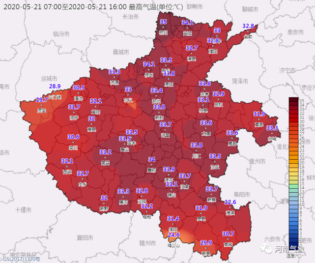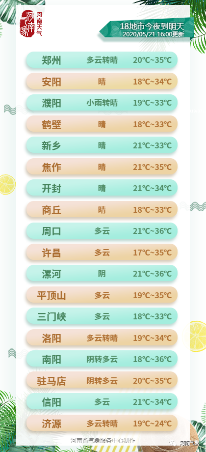 像省会郑州,明后两天都是35℃+,24日将降至30℃