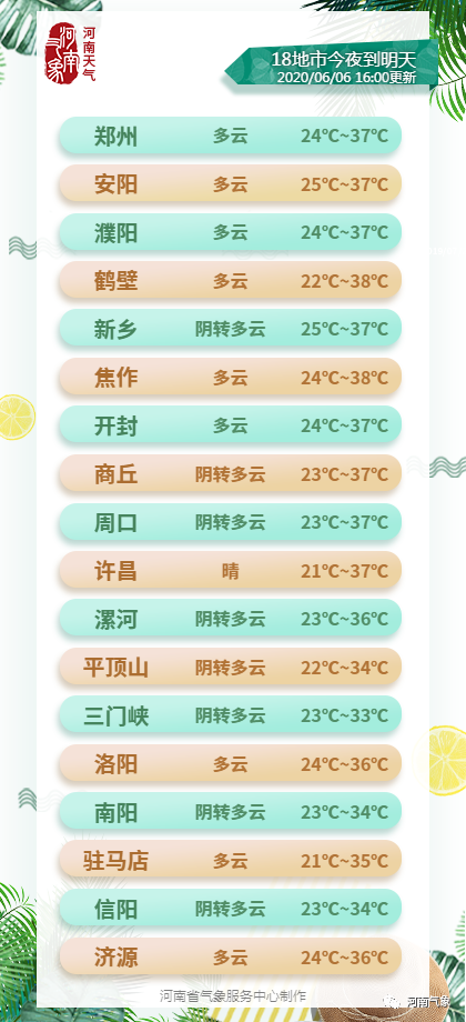 明天白天,西部、南部多云到阴天;其它地区晴天间多云。明天下午到夜里,三门峡地区和洛阳、南阳两地区西部多云间阴天,局部有阵雨、雷阵雨;其它地区晴天间多云。