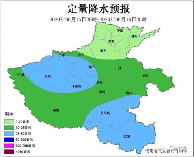 6月15日,全省阴天有小到中雨,其中济源、焦作、三门峡、洛阳、郑州、平顶山、南阳、驻马店、信阳九地区和周口地区南部部分地区有大到暴雨,局部伴有雷电、短时强降水等强对流天气。
