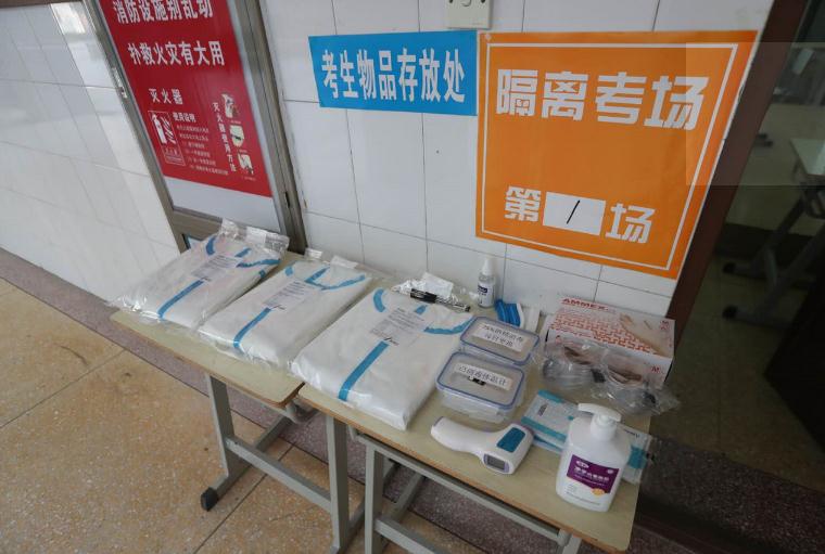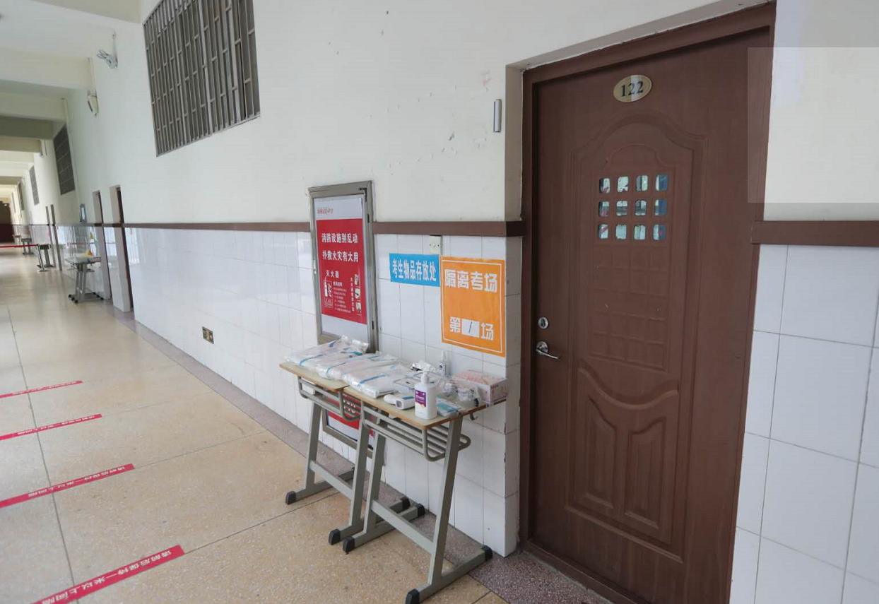 根据防疫需要,今年高考新增备用隔离考场。隔离考场长啥样?大河报·大河客户端记者注意到,隔离考场外,设置有专门的隔离通道;隔离考场门口,防护服、护目镜、体温枪、口罩、手套、酒精、消毒液等防护用品一应俱全;考场内,座位纵横间距各2米。据了解,每个考点至少设置2个备用隔离考场,隔离考场布置按标准化考场要求执行。考试当天有发热、咳嗽等呼吸道症状者,安排在备用隔离考场考试。