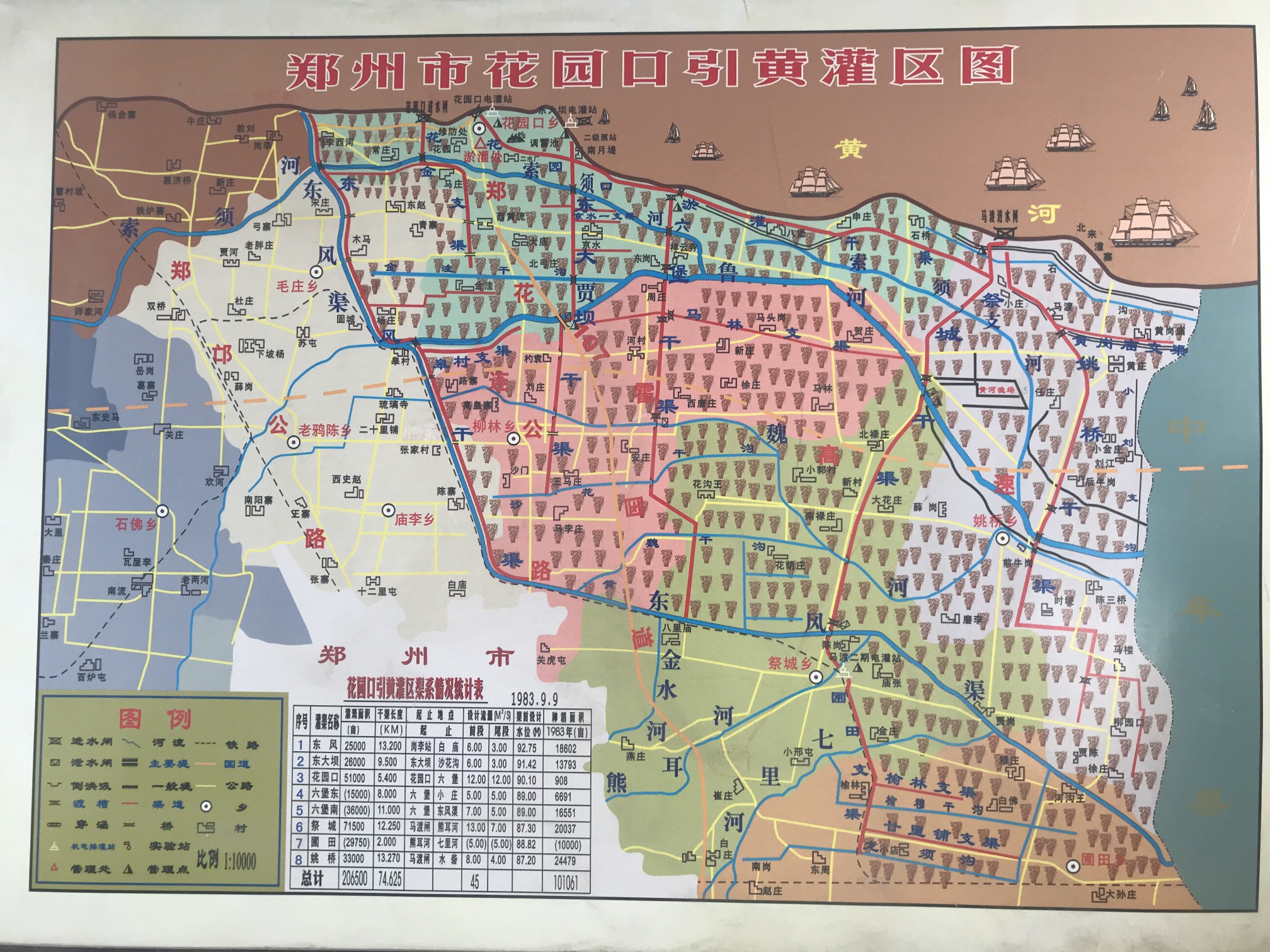 (上世纪八十年代的引黄灌区图,那时郑州市区面积较小,几乎被农田包围)