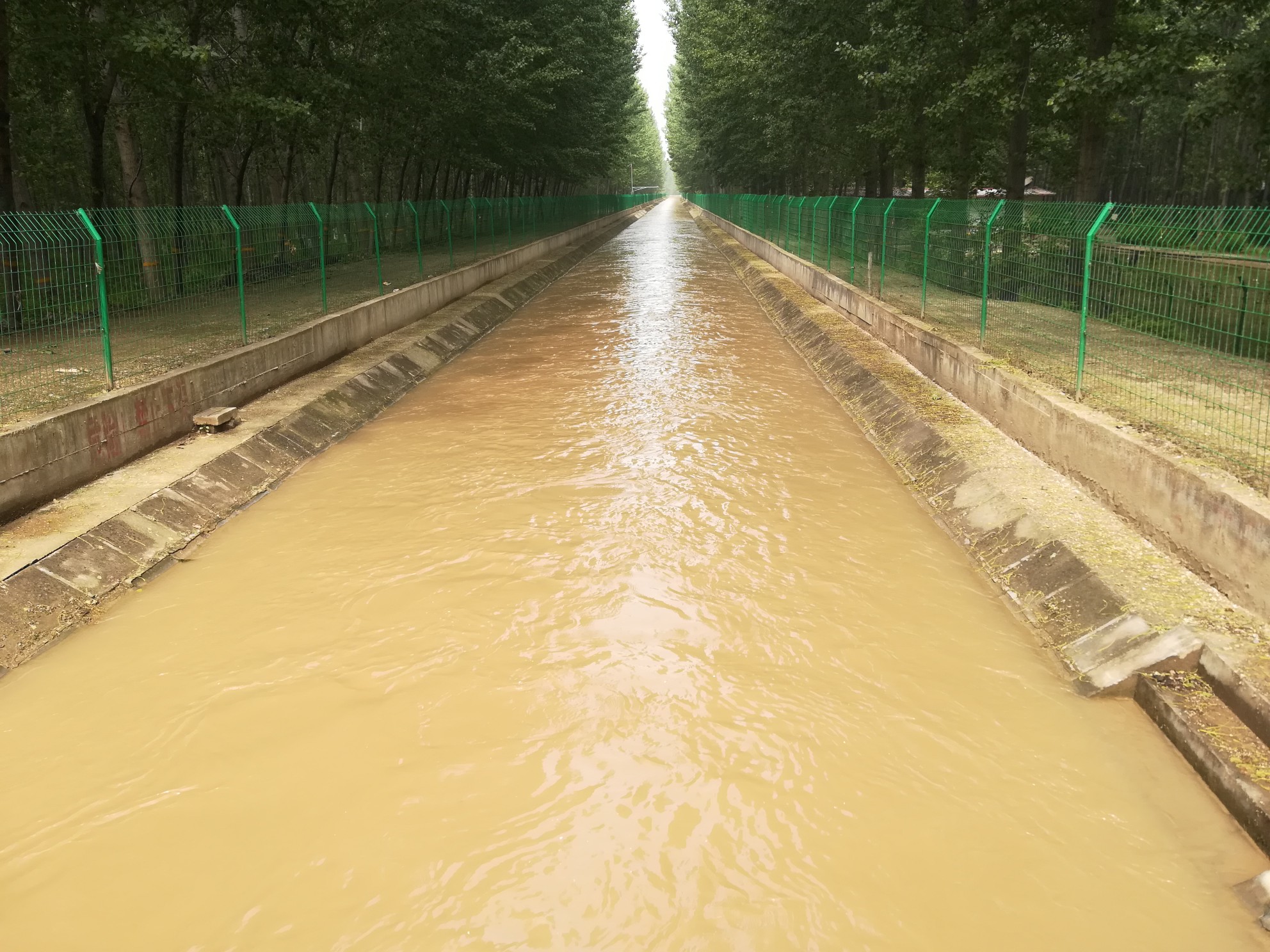 (花园口灌区东风渠干渠沿途的一处沉砂池景象)