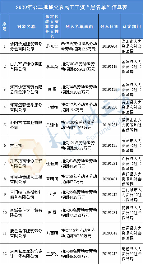 附:2020年第二批拖欠农民工工资“黑名单”信息表