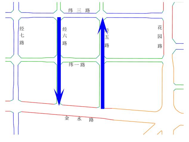 4、经六路(纬三路至金水路路段)自北向南单行,禁止自南向北通行;